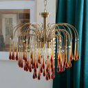 It is a stylish and ostentatious chandelier! The classic water drop amber crystal glass design disperses the light in an atmospheric way, casting shadows and creating an ambient environment, perfect for lighting in any space and bringing a touch of elegance.