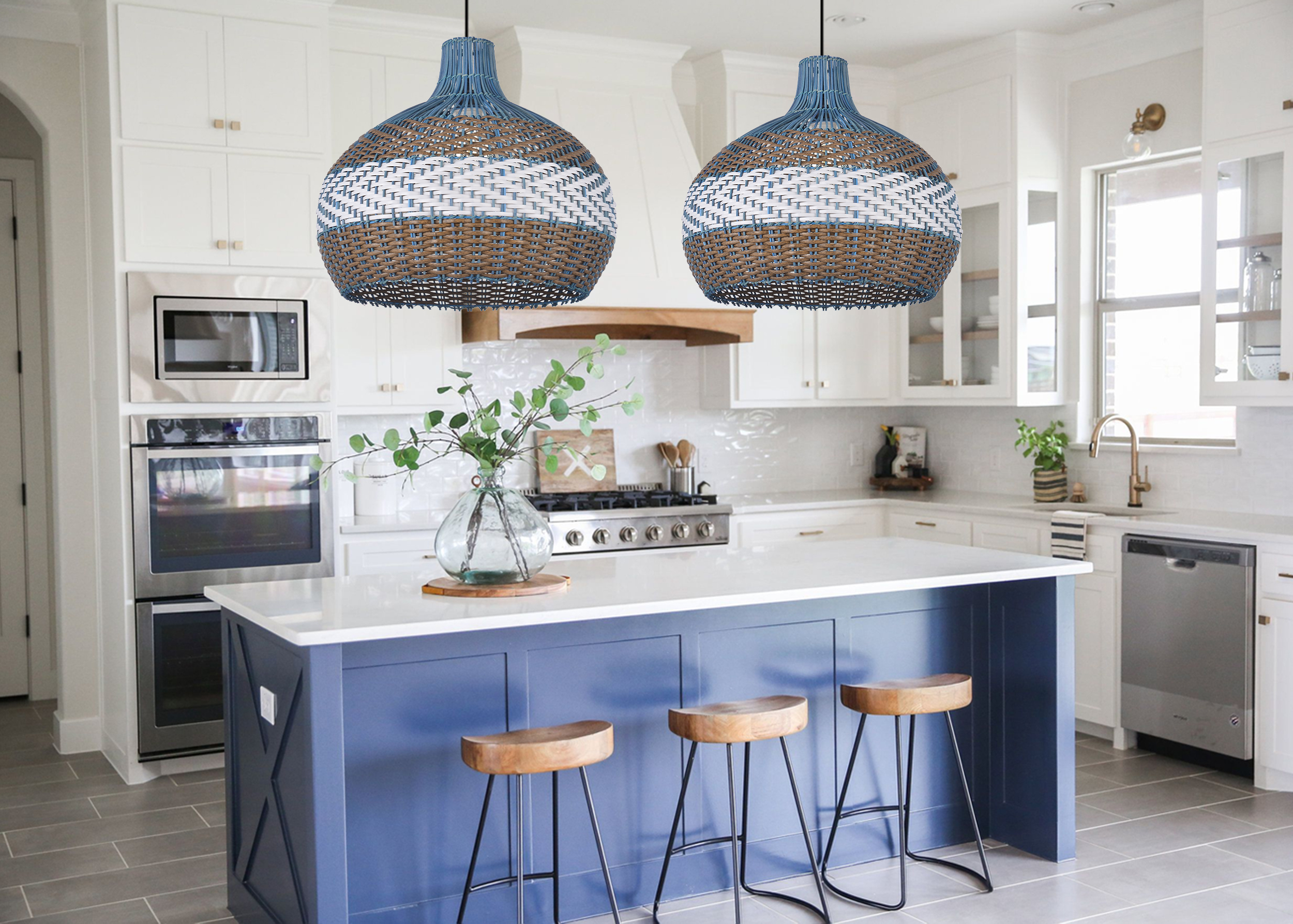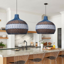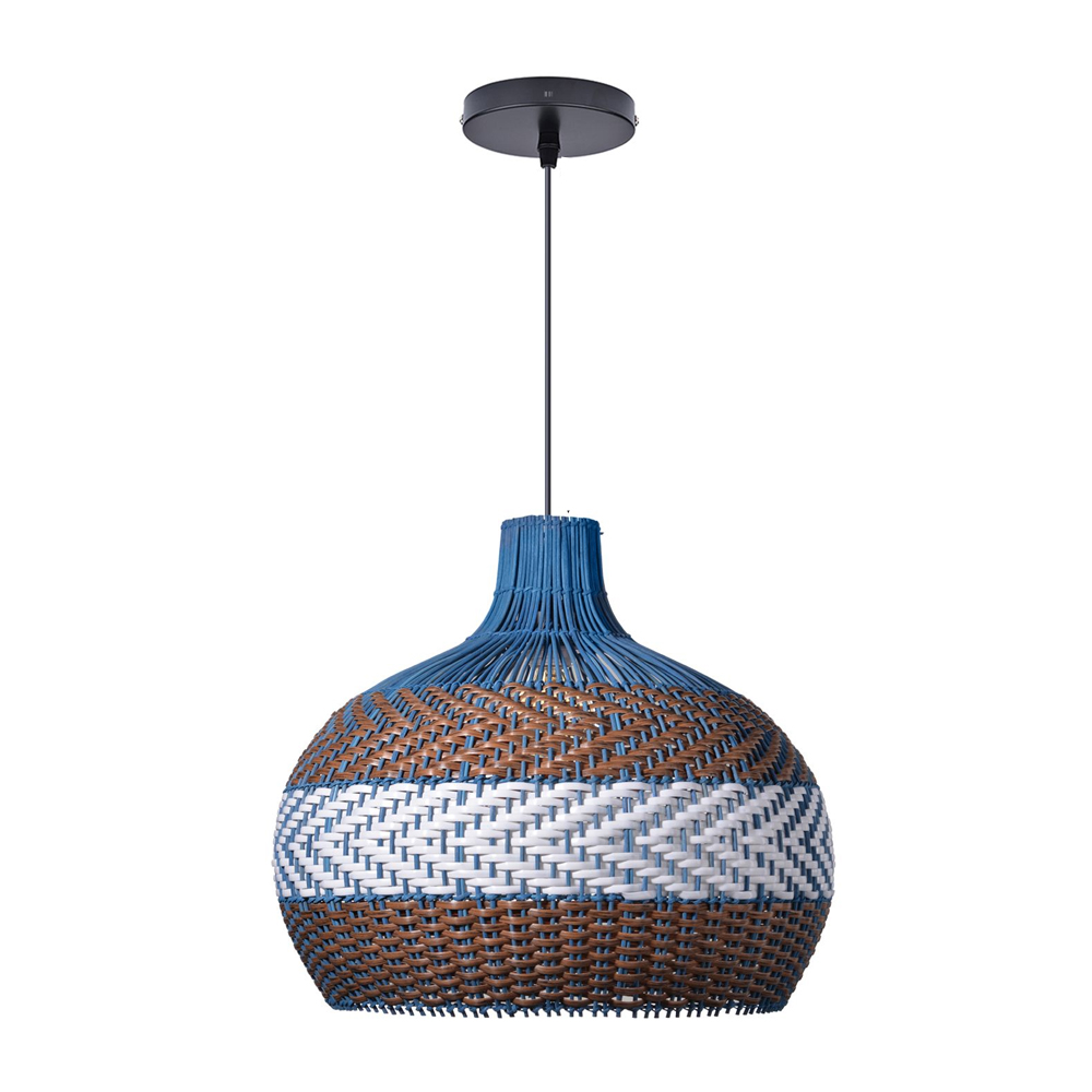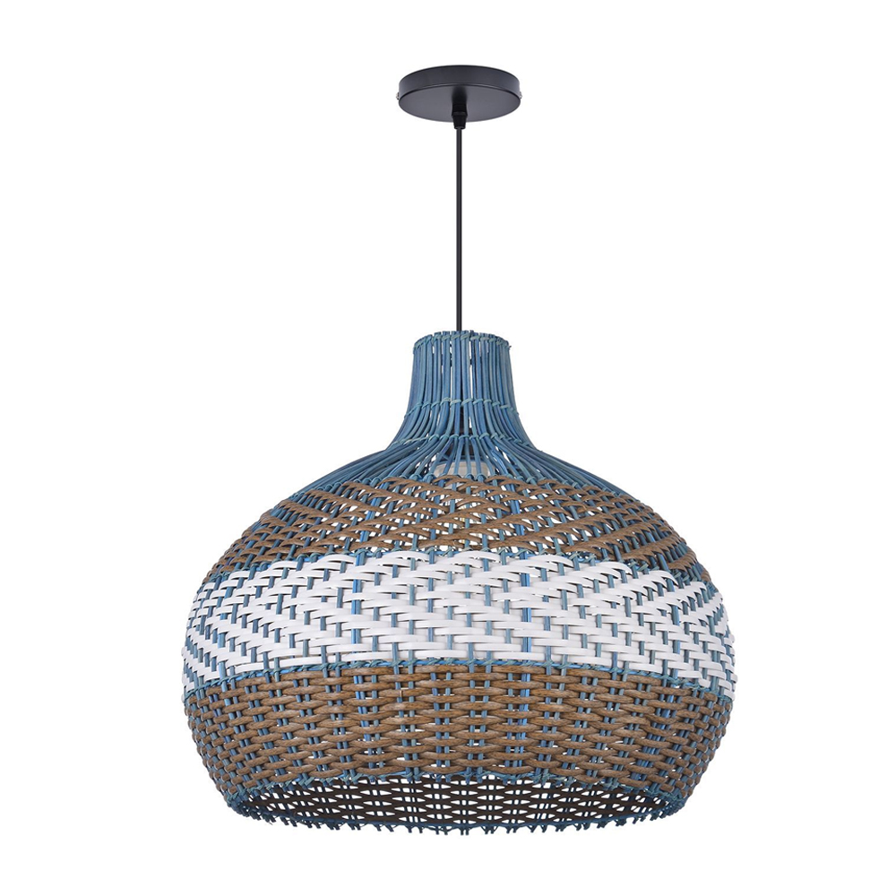We love the versatility of rattan pendant light bamboo light – it fits in naturally wherever it goes. Our pendant features a classic wicker woven, for a laidback look that's still refined. A rattan shade in courtland blue with herringbone pattern in natural and white color hand woven into rattan lamp.