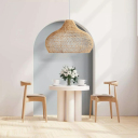 This rattan chandelier lighting creates a wonderfully new look, and inspire you to create the room of your dreams. Perfect for filling a space without leaving to much of a foot print. Simple thin rattan woven over a simple metal base.