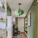 This medieval-inspired vintage flush mount lamp, featuring a simple pumpkin-shaped glass pendant, adds a touch of rustic elegance and timeless charm to any entrance or interior space.