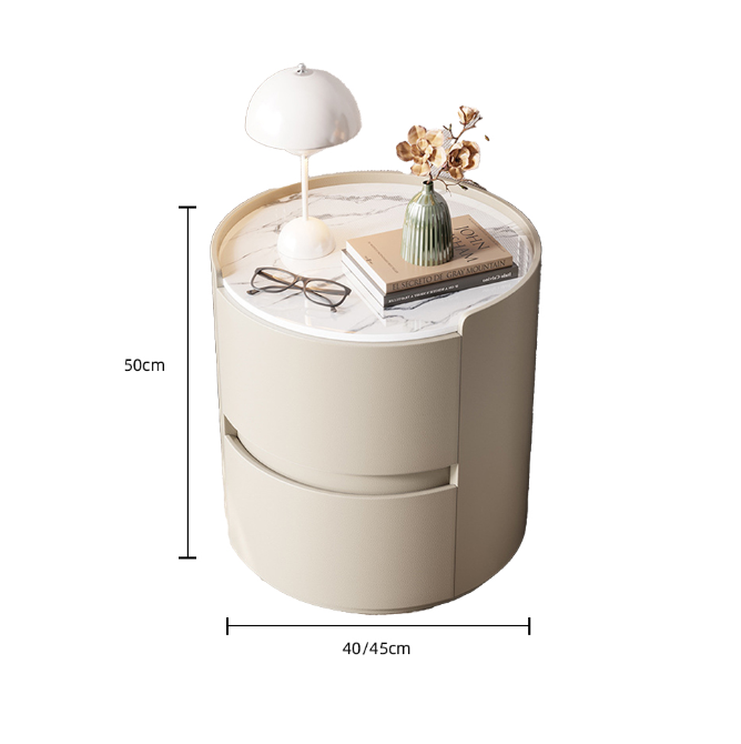 This bedside table has a double-drawer design that meets the needs of daily storage of sundries. The cylindrical shape and simple appearance are suitable for a variety of home decoration styles and easily improve space utilization.