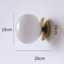 The modern brass globe wall light’s canopy and lamp-holder spruce up the space with an electrophoretic brass finish, show off the unique texture of double-layer electroplating and brushed metal. Crafted from impurity-free hand-blown opaque opal glass, its glass shade is perched on the flower-shape backplate to supply a dash of drama.